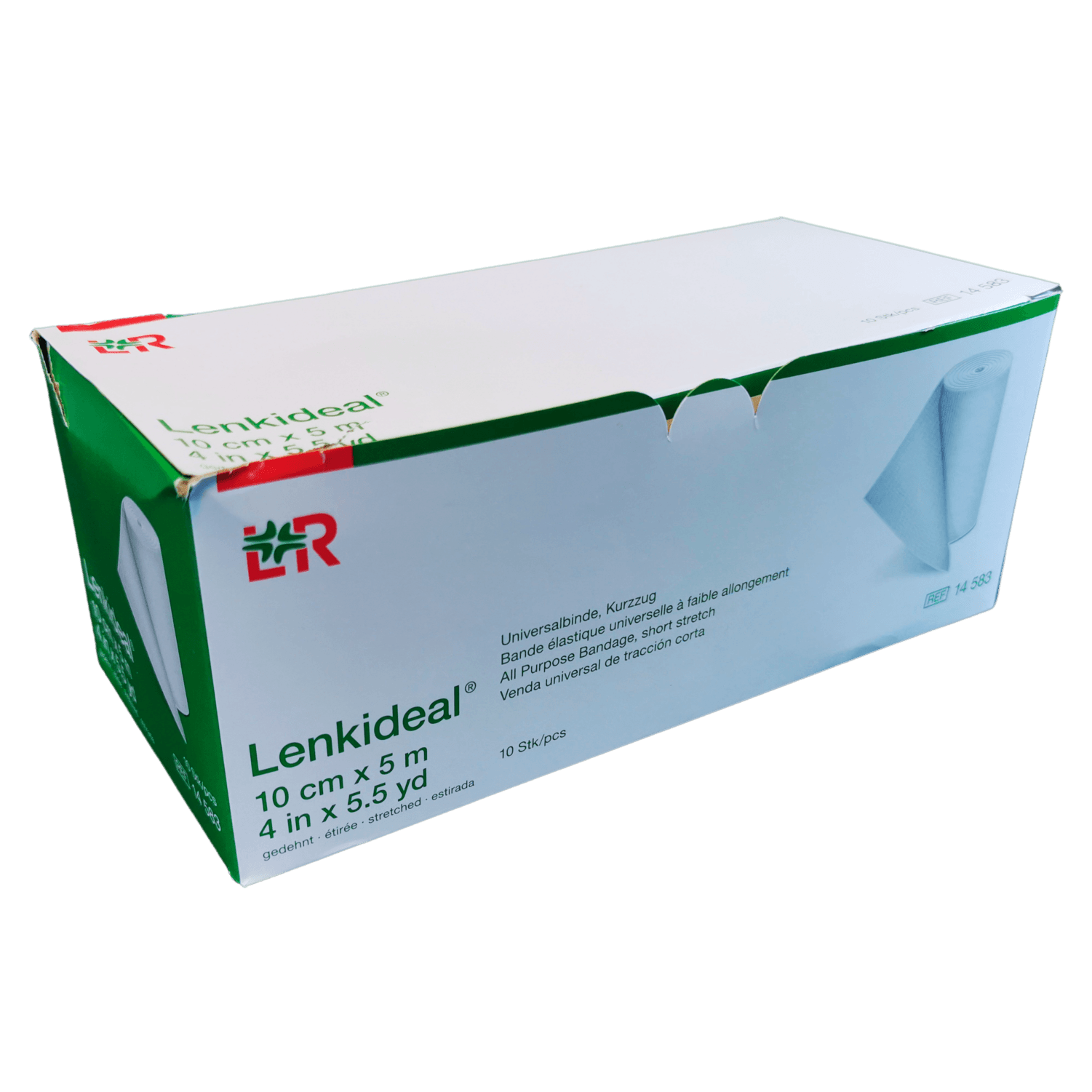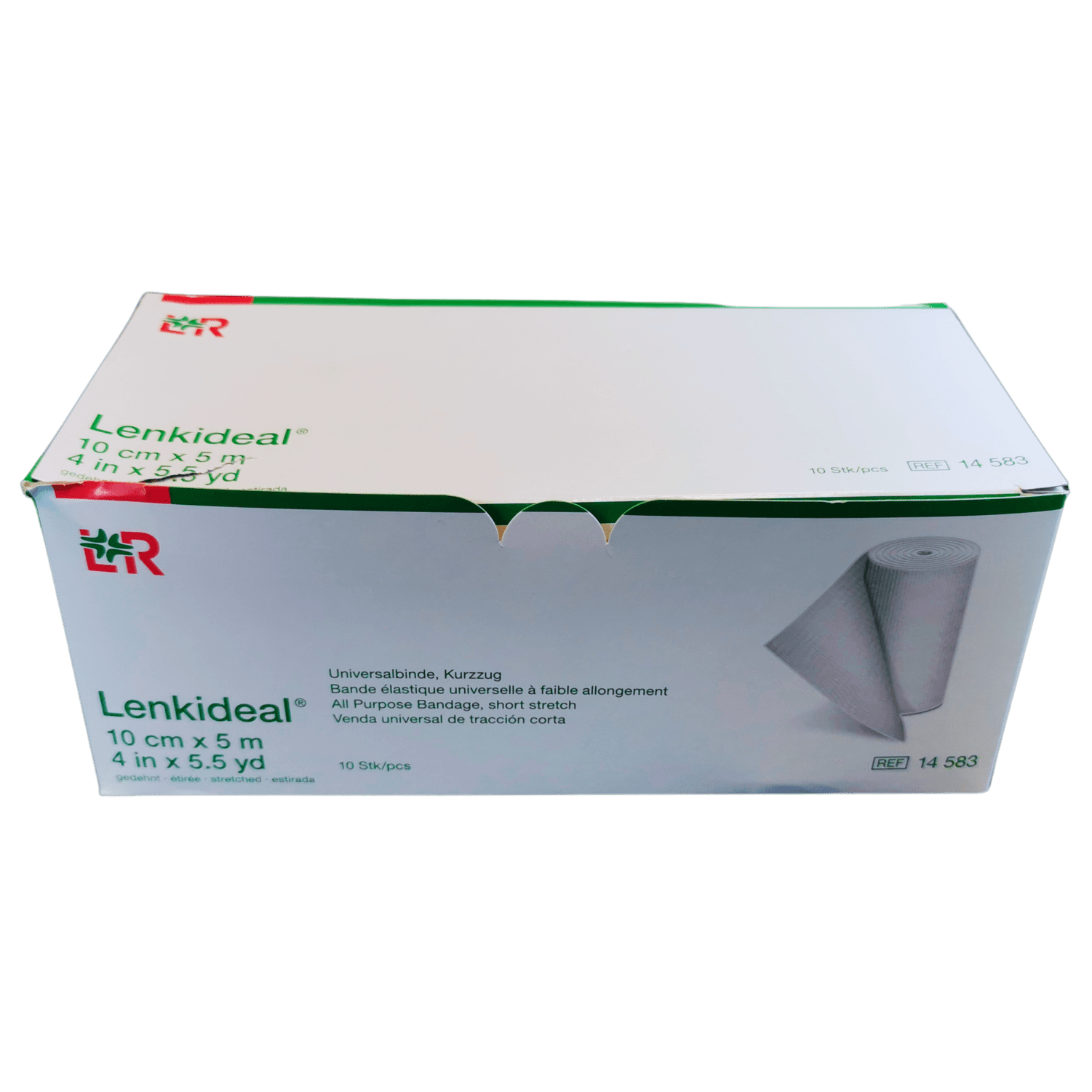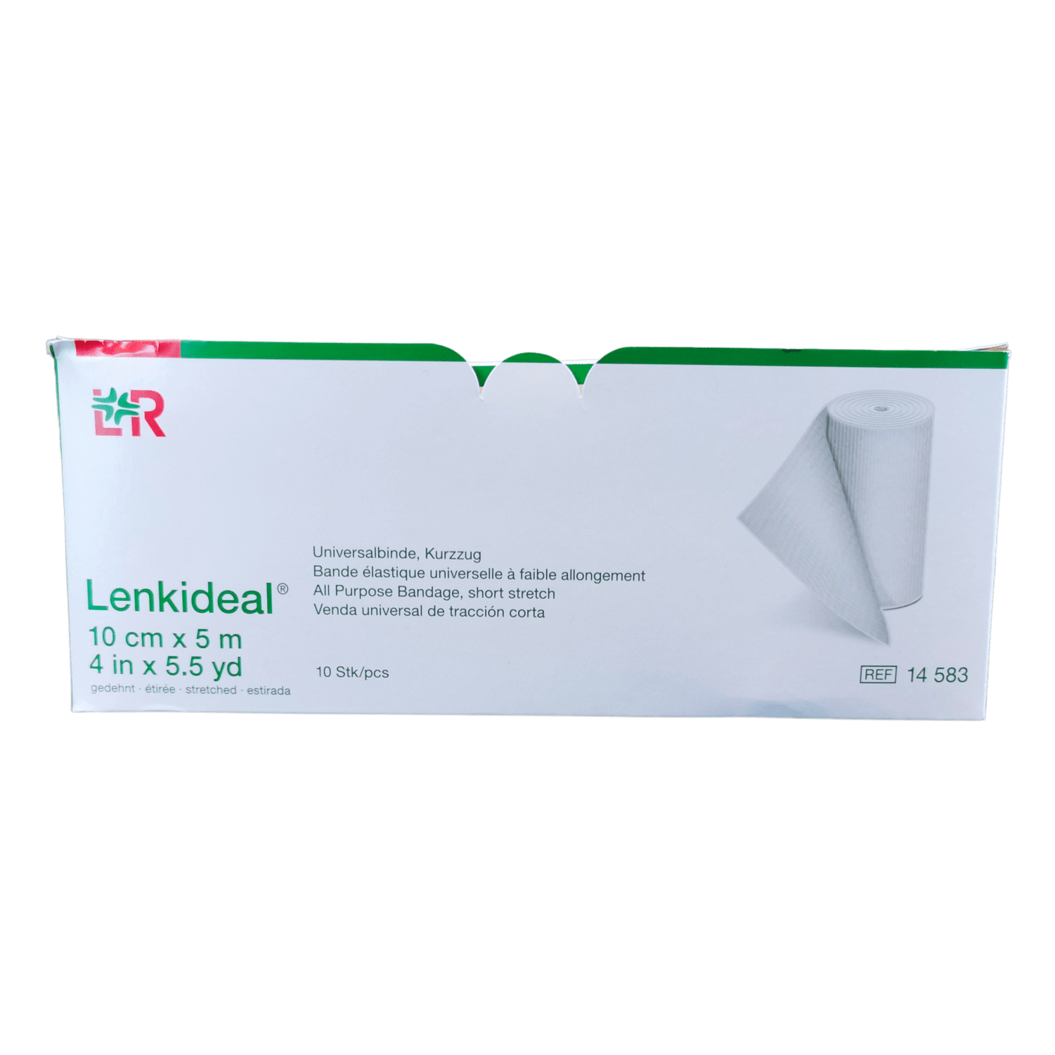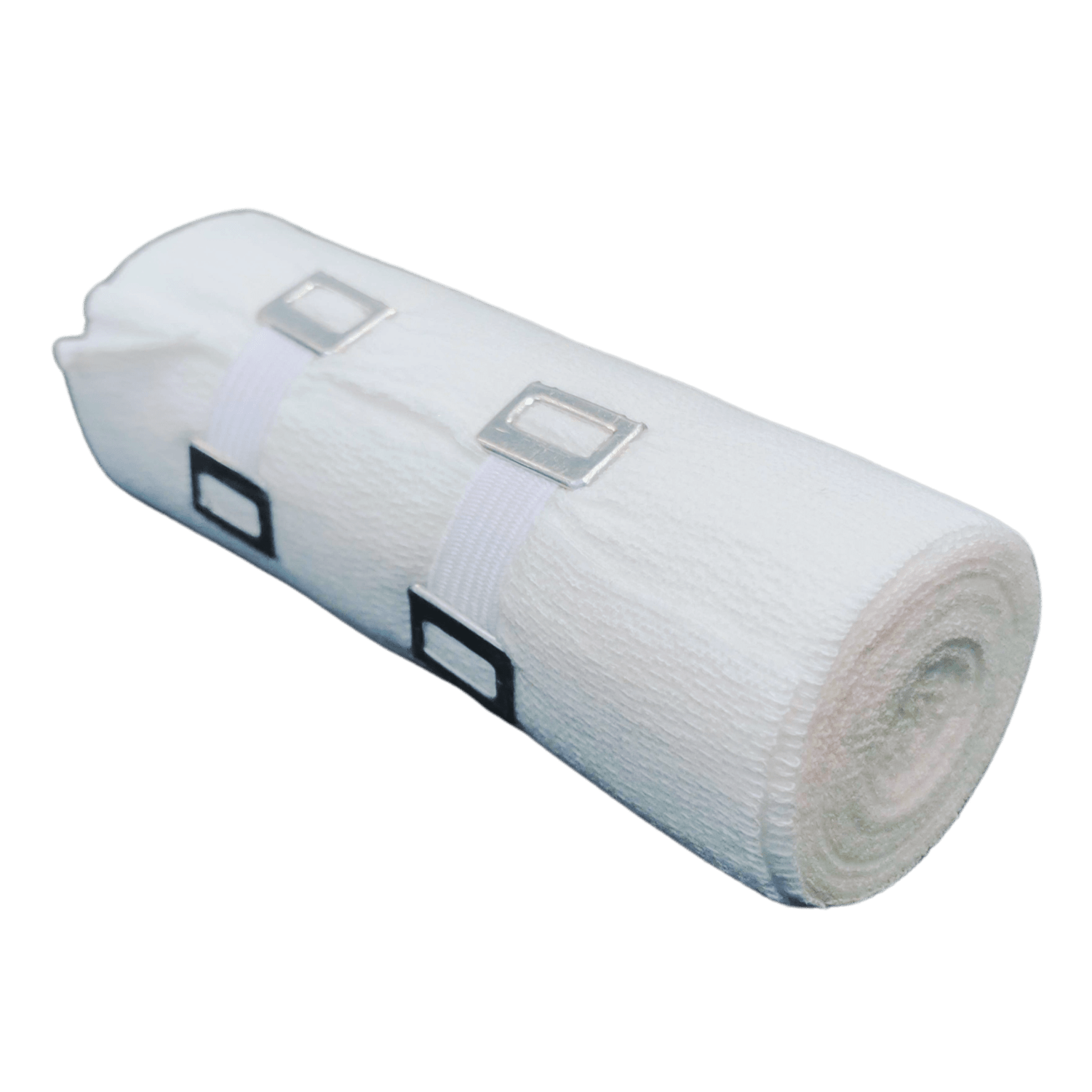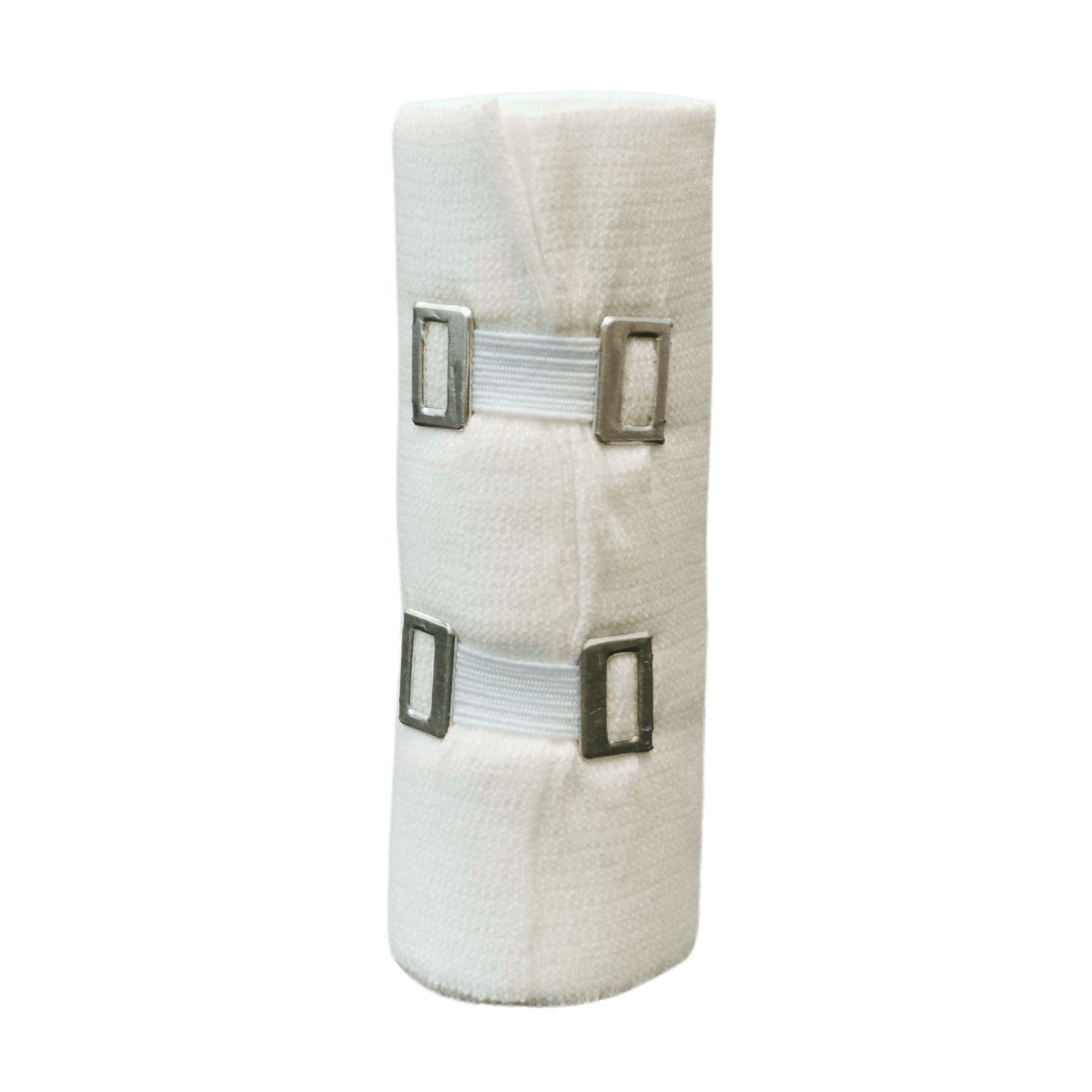 Krátkotažný elastický obvaz - bílá hustá tkanina, 64% bavlna, 35% polyamid, 1% elastan, prodyšný, měkký nedráždivý materiál. Obvaz má mnohostranné využití: komprimující fixace krytí rány komprese končetin ve flebologii profylaxe trombózy podpora a odlehčení při distorzi a kontuzi sportovní bandážování léčba zánětů šlach fixace dlahy POUŽITÍ: Elastickým obinadlem se ovine část těla (horní nebo dolní končetina) tak, aby obvaz plnil svou funkci. Obinadlo se může použít celé nebo jen část. K zajištění požadované komprese se použije svorka. Svorkou se přichytí konec obvazu k jeho ovinuté části.
