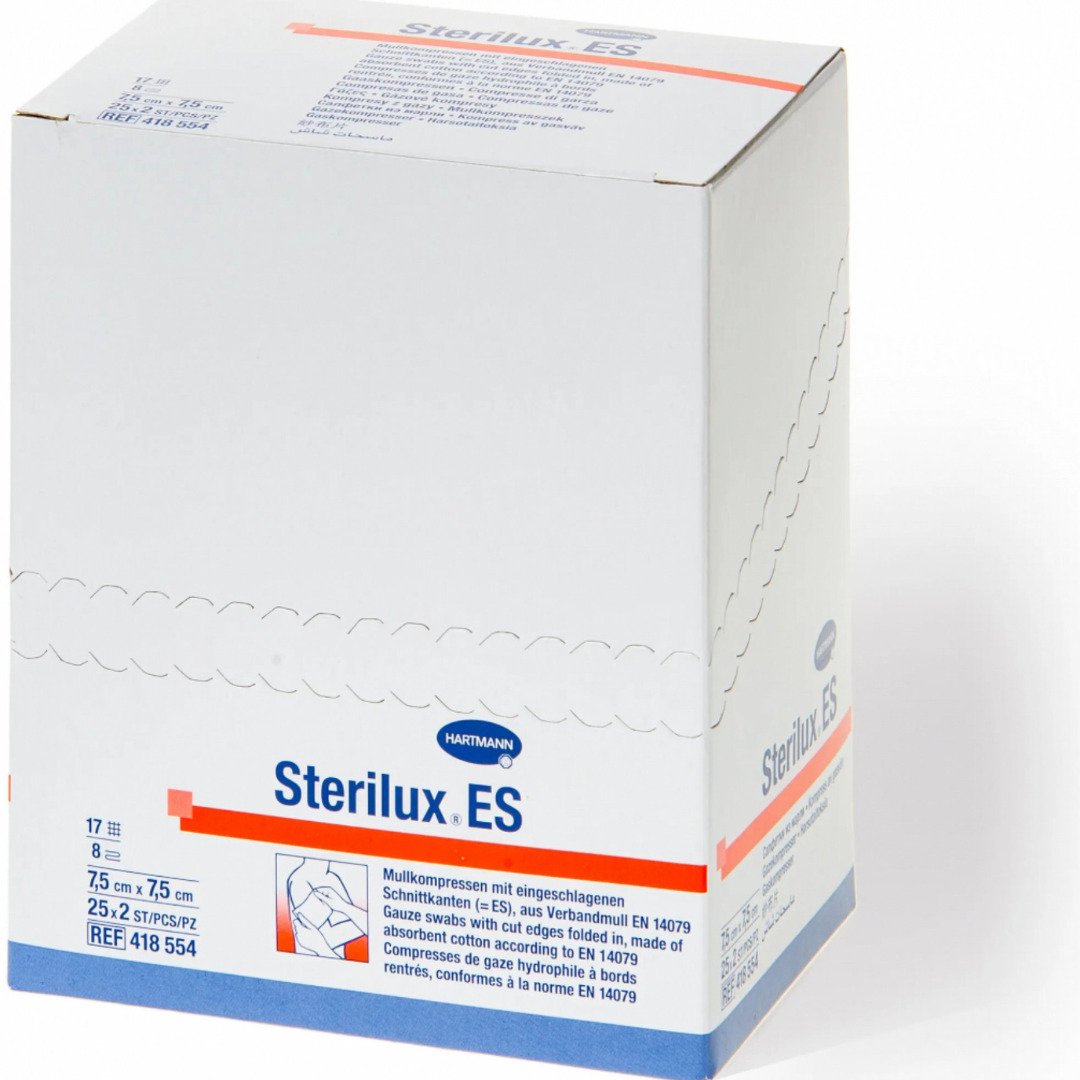 Sterilní hydrofilní gázový kompres se složenými okraji (17 vláken, 8 vrstev); Savé, prodyšné, měkké kompresy, ( složení: 100% bavlna) Používá se k ošetření různých typů ran (jednorázově k čištění, ale také ke krytí ran). Použití: Vyčištěnou ránu překryjte gázovým kompresem. Zvolte takový rozměr, aby se zajistilo krytí celé rány. Na závěr použijte fixační náplast nebo fixační obinadlo.