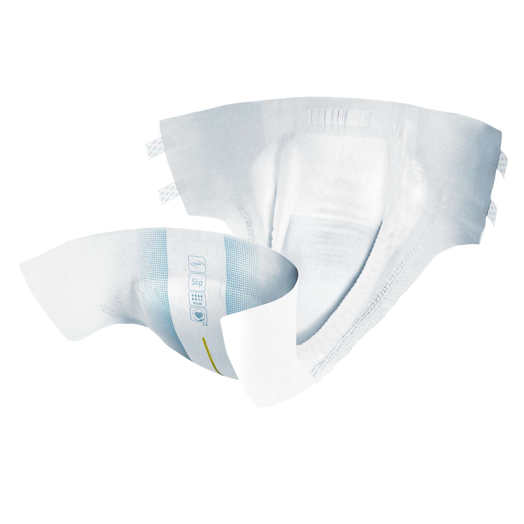 Plenkové kalhotky TENA Slip Plus jsou praktickým řešením pro osoby s těžkou inkontinencí moči. Jsou vhodné zejména pro osoby připoutané na lůžko, pro muže i ženy. Kalhotky rychle absorbují moč a uzamknou ji ve svém savém jádru, čímž podporují zdraví pokožky. Jsou vyrobeny z prodyšných materiálů, které umožňují pokožce dýchat. Lepicí pásky se suchým zipem umožňují opakované zapínání a rozepínání. Indikátor vlhkosti upozorňuje na potřebu výměny pomůcky. Absorpce: 1410 ml, obvod boků: 49-74 cm. Plenkové kalhotky se používají způsobem ilustrovaným na obalu. Vyměňují se několikrát denně.