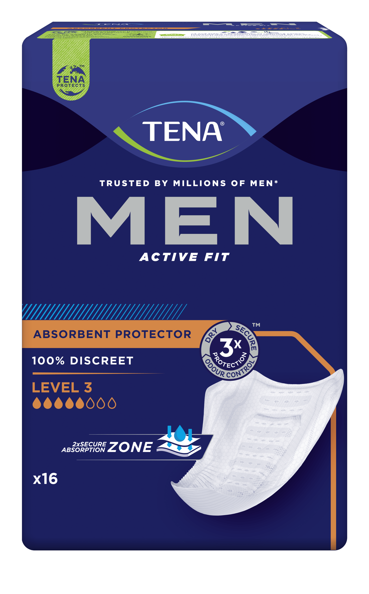 Absorpční pomůcky TENA Men jsou speciálně vyvinuty pro muže se středním únikem moči. Jsou 100% diskrétní a spolehlivé. Jsou navrženy tak, aby vyhovovaly potřebám mužské anatomie. Díky absorpčnímu jádru a kvalitním materiálům poskytují dokonalou ochranu. Rychle absorbují moč a zadržují zadrží ji uvnitř, zároveň zabraňují vzniku nežádoucích pachů. Pomůcky jsou vyrobeny z dermatologicky testovaných materiálů, šetrných k pokožce a bez parfemace. Jsou jednotlivě baleny pro snadné a diskrétní použití. S rozměry: 27 x 22,8 cm a absorpcí 710 ml. Absorpční pomůcky TENA Men, které jsou speciálně vyvinuty pro muže, se pomocí lepícího proužku na vnější straně uchytí v prádle. Vyměňují se podle potřeby (několikrát denně).