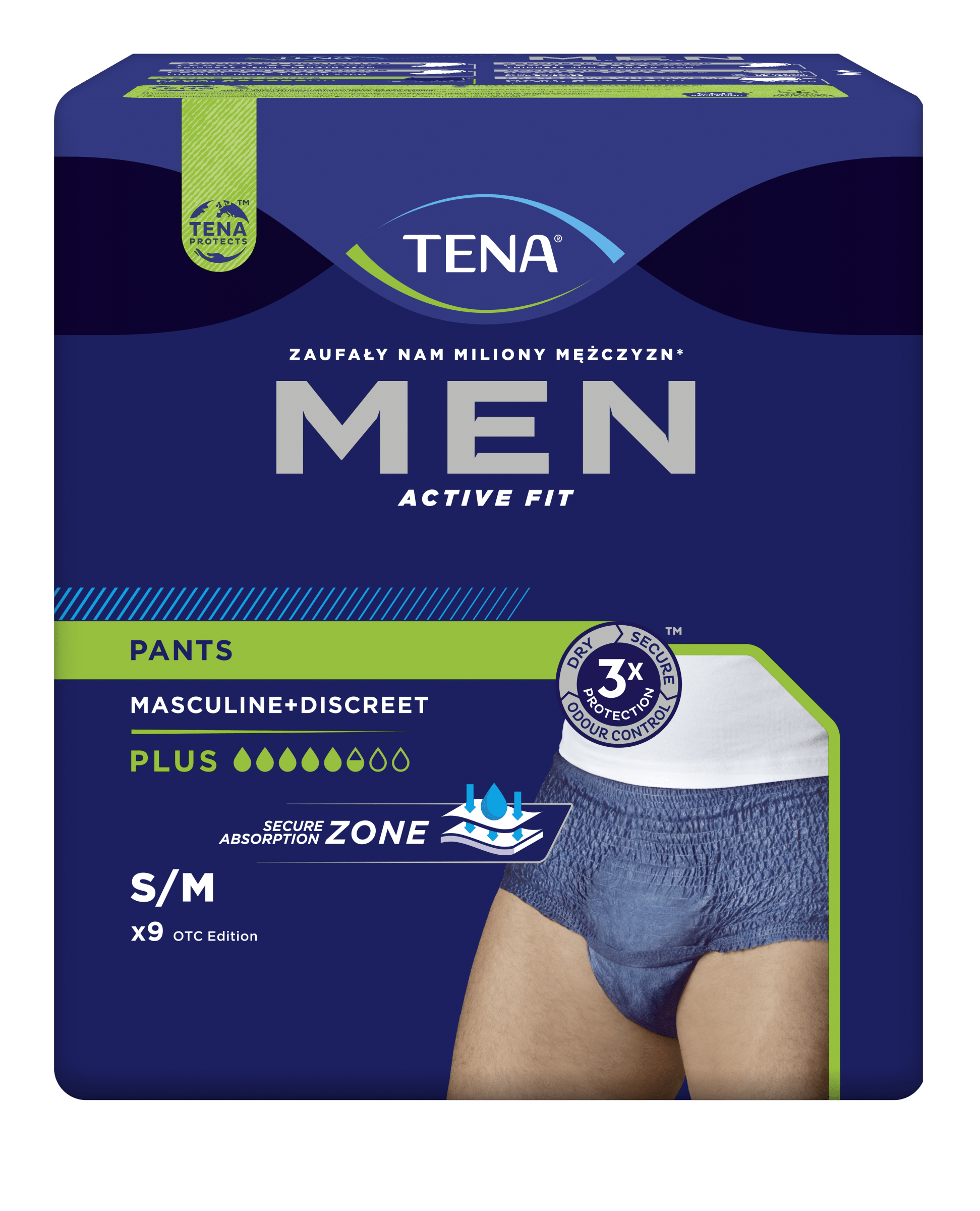 Tmavě modré inkontinenční kalhotky TENA Men Pants Blue jsou určeny pro muže se středním až těžkým únikem moči. Mají vzhled běžného spodního prádla, ale poskytují ochranu, na kterou se můžete spolehnout jako u všech produktů TENA. Tvar absorpčního jádra a dvojité ochranné bariérky zajišťují trojitý účinek proti protečení moči, vlhkosti a zápachu. Kalhotky se dokonale přizpůsobí tvaru mužského těla a zaručují diskrétnost při nošení. Jsou dermatologicky testované a šetrné k pokožce. Rychle absorbují moč a uzamknou ji v absorpčním jádru. Absorpce: 1010 ml, obvod boků: 75-105 cm. Kalhotky se snadno oblékají jako běžné spodní prádlo a mění se podle potřeby, obvykle několikrát denně.