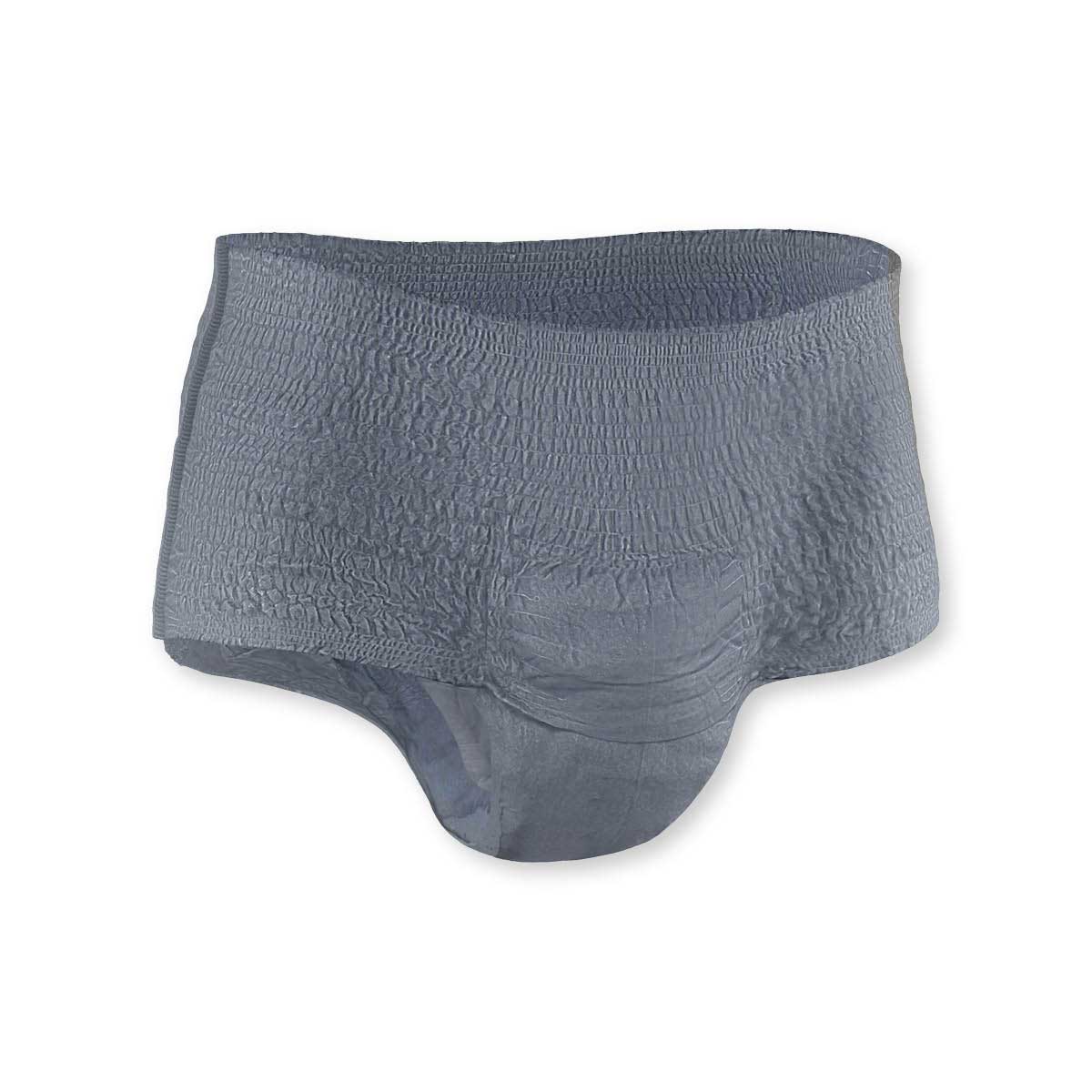 Šedé inkontinenční kalhotky pro muže se středním až těžkým únikem moči, které mají vzhled běžného spodního prádla. Absorpční jádro a dvojité ochranné bariérky poskytují trojitý účinek proti protečení moči, vlhkosti a zápachu. Kalhotky se dokonale přizpůsobí tvaru mužského těla a zajišťují maximální diskrétnost při nošení. Jsou dermatologicky testované a šetrné k pokožce. Rychle absorbují moč a uzamknou ji v absorpčním jádru. Absorpce: 850 ml, obvod boků: 95-130 cm.