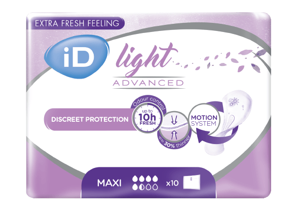Vložky iD Light Advanced Maxi jsou diskrétní, velmi pohodlné a nabízejí ochranu při inkontinenci. Vložka je velice flexibilní a poskytuje ochranu až na 10 hodin. Anatomický tvar a lepicí proužek zajistí, že vložka pohodlně sedí ve spodním prádle. iD Light Advanced Maxi je ideální, pokud vedete aktivní životní styl, který umožňuje svobodu pohybu, poskytuje ochranu proti úniku a kontrolu zápachu. Velikost vložky: 37x16 cm
