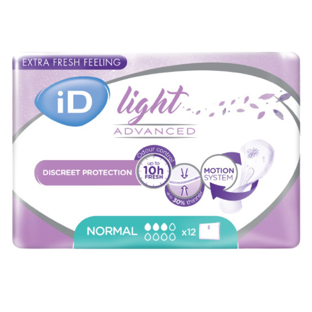 Vložky iD Light Advanced Normal jsou diskrétní, mimořádně pohodlné a nabízejí ochranu při inkontinenci. Tento produkt je velmi flexibilní a účinný díky technologii neutralizace zápachu až na 10 hodin. Anatomický tvar a lepící proužek zajišťují, že vložka pohodlně drží na místě ve spodním prádle. iD Light Advanced Normal je ideální pro aktivní životní styl, protože umožňuje volnost pohybu, poskytuje ochranu proti protečení a kontrolu zápachu. ​ Rozměr vložky: 27x10 cm