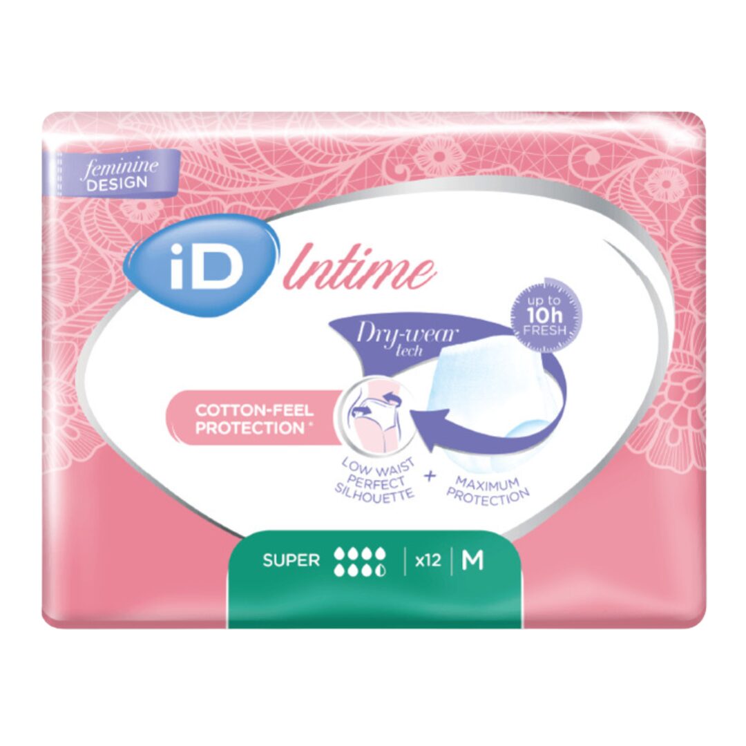 ID Intime Super vypadá a působí jako běžné dámské spodní prádlo díky speciálnímu designu s nízkým pasem, který nabízí diskrétní ochranu pod oblečením. Plenkové kalhotky jsou z tenkého komfortního materiálu a poskytují vám pohodlnější nošení, absorbují až 8násobek své vlastní hmotnosti a přitom drží svůj původní tvar. iD Intime plenkové kalhotky mají až 10hodinovou kontrolu zápachu a dvojitou ochranu proti úniku, což vám dává dlouhotrvající pocit svěžesti.​​​​