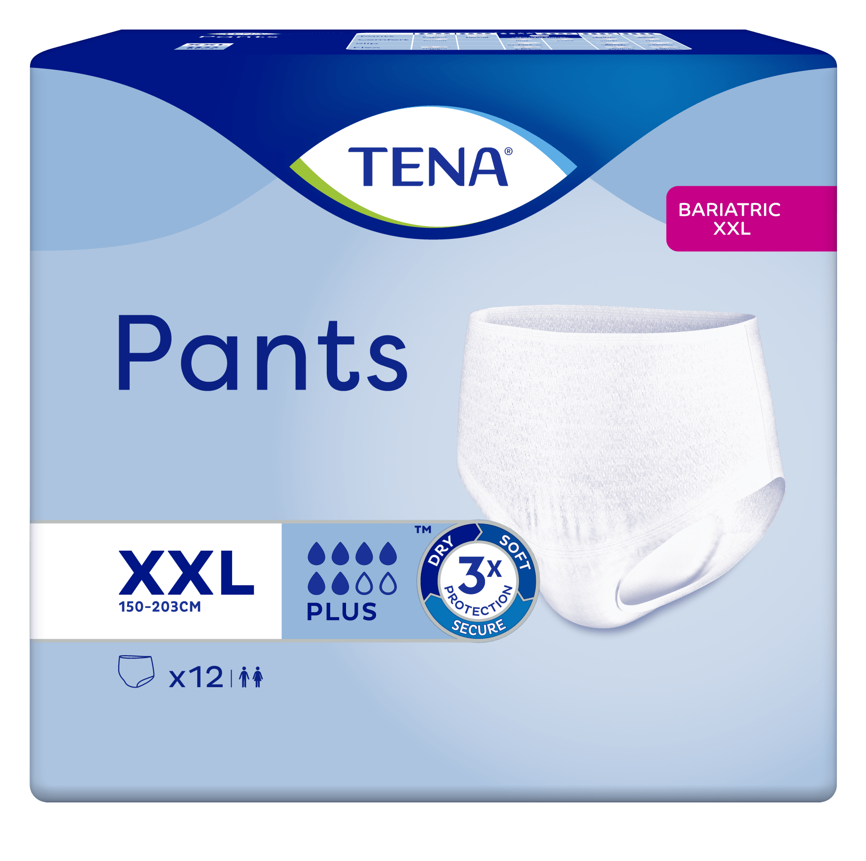 Natahovací kalhotky TENA Pants Bariatric jsou praktickým řešením pro bariatrické osoby se střední až těžkou inkontinencí. Jsou vhodné zejména pro mobilní a částečně mobilní osoby s obvodem pasu až 203 cm. Absorpční kalhotky rychle absorbují moč a poskytují tak ochranu proti protečení. Jsou dermatologicky testovány a pomáhají udržet pokožku v suchu, díky čemuž snižují riziko její iritace. Počet ks v balení: 12ks Absorpce: 1440ml Rozměry: 150-203